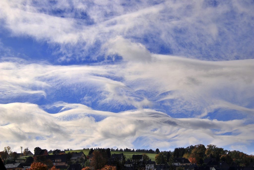 Das schmale, aber sehr starke Windband (Jet) folgt im Maximum wellenförmig der Tropopause (in unseren Breiten in etwa 8 bis 12 km Höhe) und erzeugt Schwerewellen mit großen Amplituden, die durch orografische Prozesse (wie Föhnverstärkung, Kopplung mit Gebirgswellen oder Turbulenzen durch Scherwinde) die oft föhnigen Wolken (Lenticularis) stark deformiert. Oft machen die Wolken auch die Schwerewellen selbst sichtbar und folgen fransig oder zerrissen deren Verlauf. Besonders im Herbst und Winter ist der Jet bei uns oft kräftig und formt diese typischen ausgefransten oder welligen Altocumulus- oder Cirrusfelder. Ein besonderer Vertreter von Jetwolken ist Asperitas, der mit seinen verschiedenen Formen ebenfalls die atmosphärischen Wellen und Turbulenzen sichtbar macht und sowohl als stark wellige Wolkenschicht als auch als zerrissene Einzelwolken auftreten kann.