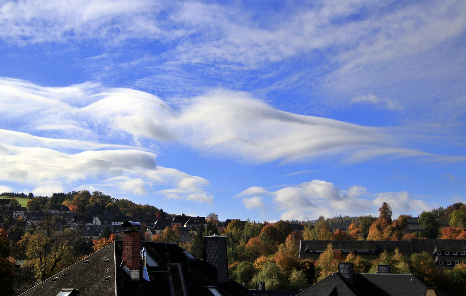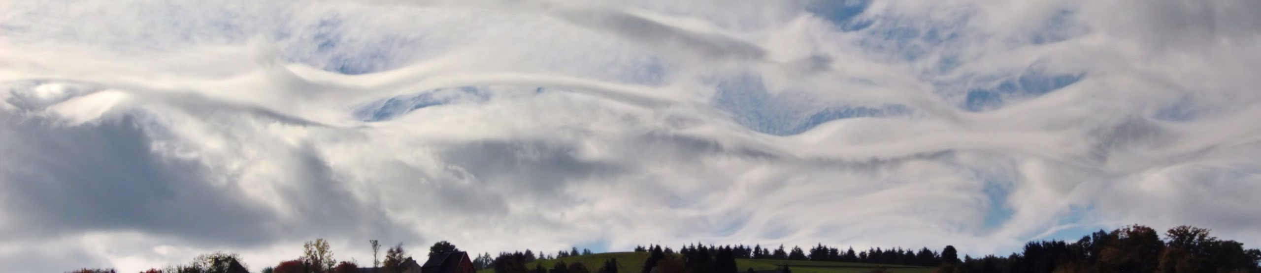 Das schmale, aber sehr starke Windband (Jet) folgt im Maximum wellenförmig der Tropopause (in unseren Breiten in etwa 8 bis 12 km Höhe) und erzeugt Schwerewellen mit großen Amplituden, die durch orografische Prozesse (wie Föhnverstärkung, Kopplung mit Gebirgswellen oder Turbulenzen durch Scherwinde) die oft föhnigen Wolken (Lenticularis) stark deformiert. Oft machen die Wolken auch die Schwerewellen selbst sichtbar und folgen fransig oder zerrissen deren Verlauf. Besonders im Herbst und Winter ist der Jet bei uns oft kräftig und formt diese typischen ausgefransten oder welligen Altocumulus- oder Cirrusfelder. Ein besonderer Vertreter von Jetwolken ist Asperitas, der mit seinen verschiedenen Formen ebenfalls die atmosphärischen Wellen und Turbulenzen sichtbar macht und sowohl als stark wellige Wolkenschicht als auch als zerrissene Einzelwolken auftreten kann.