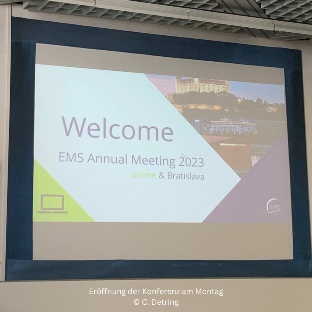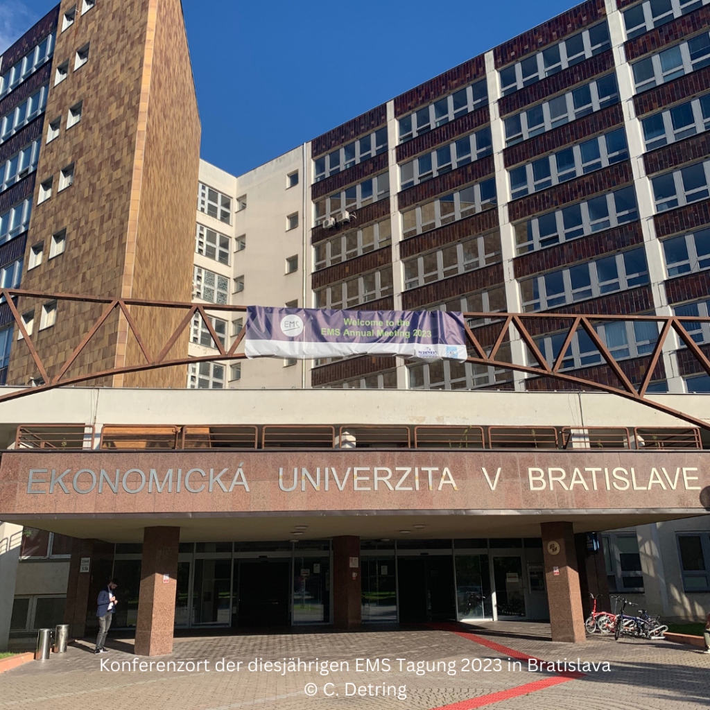 In Bratislava fand das diesjährige EMS Annual Meeting vom 04.-09.09. unter dem Thema “Europe and droughts: Hydrometeorological processes, forecasting and preparedness” statt. Am Montagnachmittag gab es eine Eröffnungssession mit Preisverleihungen. Dabei erhielt jDMG-Vorsitzende Carola Detring den EMS Oustanding Contribution Award for early career scientists für ihr Engagement zum Aufbau eines europäischen Netzwerks junger Wissenschaftler:innen im Rahmen der EMS und ihrer Partner. Neben vielen parallel laufenden Sessions gab es einen IceBreaker, an drei Abenden Keynote Vorträge, zwei Poster Sessions und auch in diesem Jahr wieder einen Lunch für Early Career Scientists. Dieser wurde von PRIMET (http://www.primet.org ) gesponsert und es nahmen rund 40 junge Wissenschaftler:innen, sowie ein paar eingeladene Senior Scientists teil. Unter den Gästen war auch Prof. Liz Bently, die neue EMS Präsidentin. Der Fokus dieser gemeinsamen Mittagspause lag auf dem Netzwerken. In diesem Jahr waren auch wieder ein paar Leute aus der jDMG in Bratislava und stellten ihre wissenschaftlichen Arbeiten in Vorträgen und Postern vor. Am Mittwoch in der Mittagspause trafen wir uns für ein gemeinsames Mittagessen. Abends gab es die Möglichkeit, an einer Craft Beer Tour teilzunehmen. Das Wetter war die ganze Woche über sehr sommerlich warm und sonnig, sodass man die Freizeit gut für etwas Sightseeing nutzen konnte. 2024 wird die Jahrestagung vom 02.-06.09. in Barcelona stattfinden. Vielleicht treffen sich dort wieder ein paar Leute aus der jDMG.