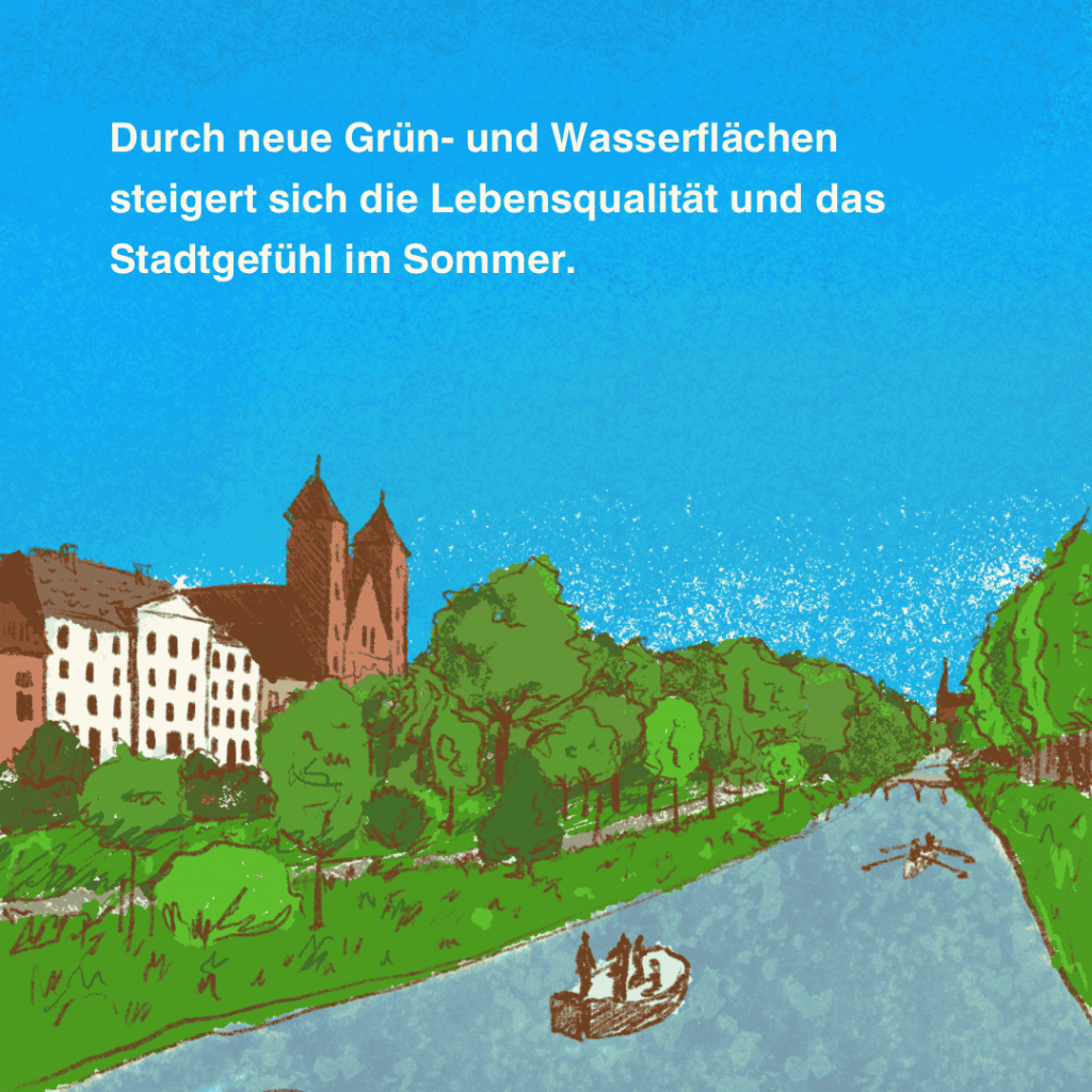 Ein herausragendes Beispiel ist die Umgestaltung des ehemaligen Stadtautobahnrings zu einem grünen Kanalring. Dort, wo früher Asphalt dominierte, fließt heute wieder Wasser. Diese Maßnahme reduziert nicht nur die Hitzeentwicklung, sondern sorgt auch für kühlende Verdunstung und angenehme Frischluftzirkulation.