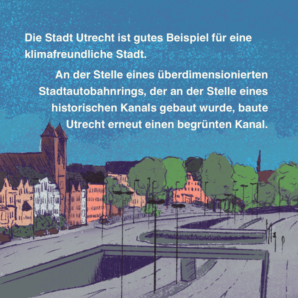 Auch sonst denkt Utrecht bei der Verkehrsplanung klimafreundlich: Der Radverkehr hat Vorrang, viele Straßen sind verkehrsberuhigt, was nicht nur die Autos immer mehr aus der Innenstadt zurückdrängt und damit Emissionen senkt, sondern auch Hitzeinseln vermeidet.